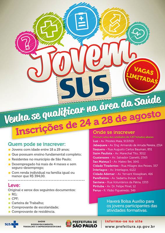De 24 e 28 de agosto. Prefeitura abre inscrições para o projeto Jovem SUS